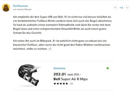 Many thanks to user DerDavoser for the good tip. With the "Super Air R Spherical Mips" you get a mountain bike helmet that you can ride uphill without a chin bar and downhill with the additional protection. With a bit of practice, the conversion can also be done with the helmet on your head.
