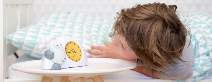 Sam’s eyes close at bedtime and open in the morning when it is ok to get up. Set at a specific time or by length of nap. The LCD screen changes colour to denote morning or night. Analogue and digital time, easy for children to learn and understand. For older children, choose from 3 sounds with adjustable volume. Dimmable nightlight can stay lit continuously or switch off after 5, 15 or 30 minutes.